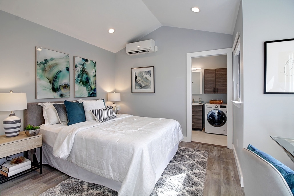 The ADU must contain a kitchen, bathroom, sleeping area, and environmental controls like heating and cooling. The ADU can share the waterline with the house, which makes it easier to build. And it will need a sewer line.