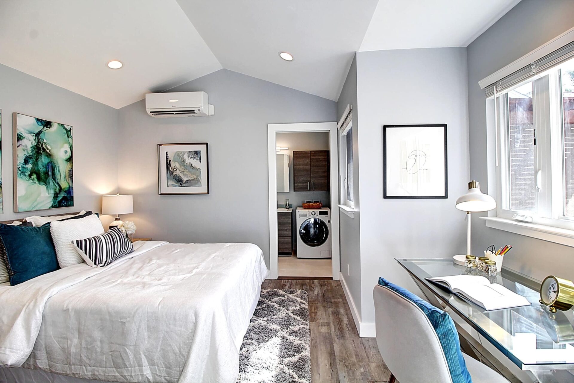 Rick and Kayla Lebowitz are parents of two little ones and working professionals living in Downtown San Jose. Kayla works from home most days of the week, and between the busy household and three sets of grandparents, the Lebowitz family needed to create a separate, private space for work and long-term family stays.