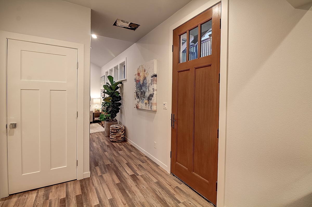 The kitchen was designed to have maximum counter space for cooking with an island that doubles as the dining table or secondary work area. Additionally, an induction cooktop was selected for both the electrical requirements, but also for longer-term safety and aging in place.