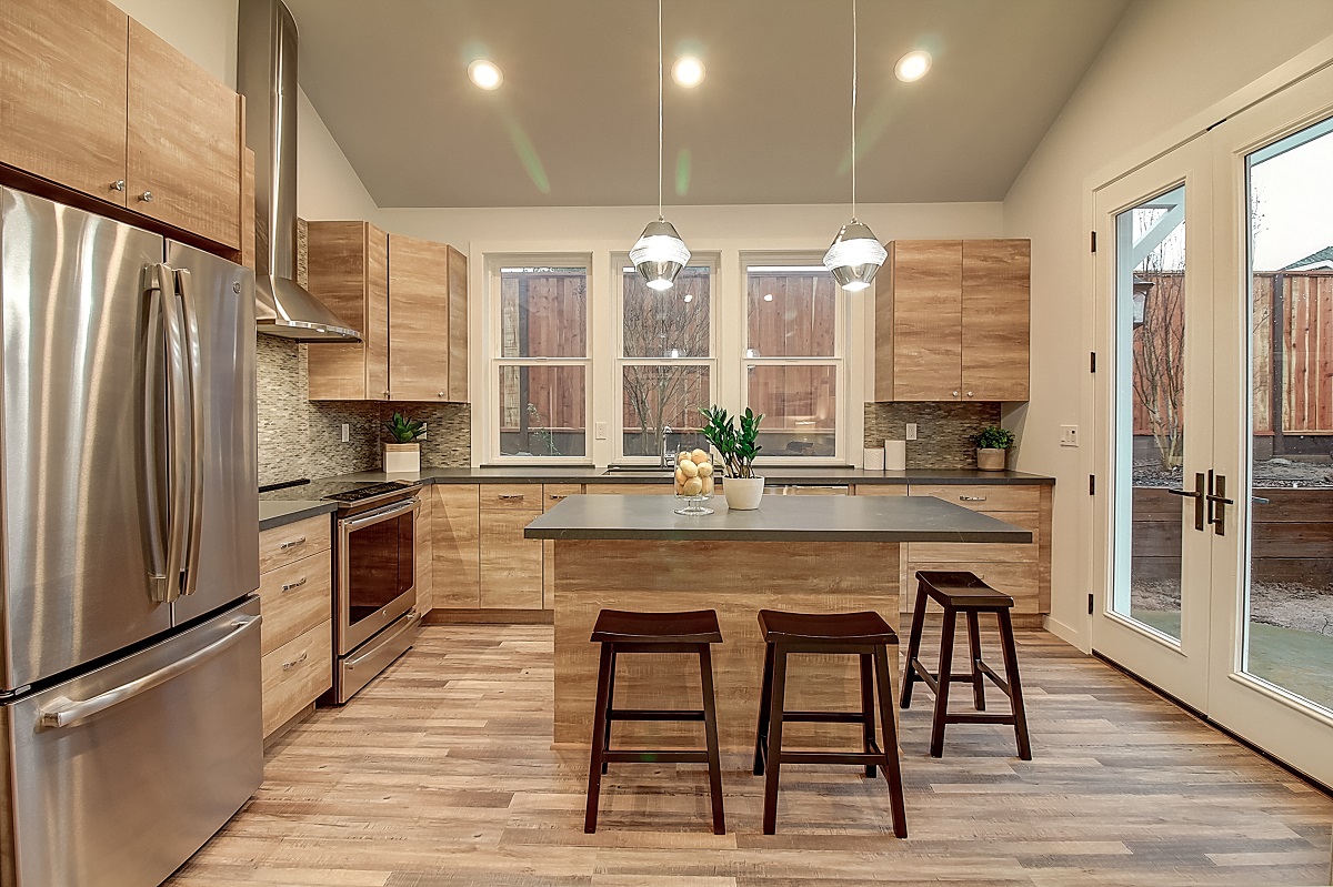 To accomplish this, the design team at Acton ADU curated a sleek, yet rustic design that provided loads of counter space and storage, and tailored an area originally designated as a breakfast nook, into a wonderful office space. Here are some highlights.