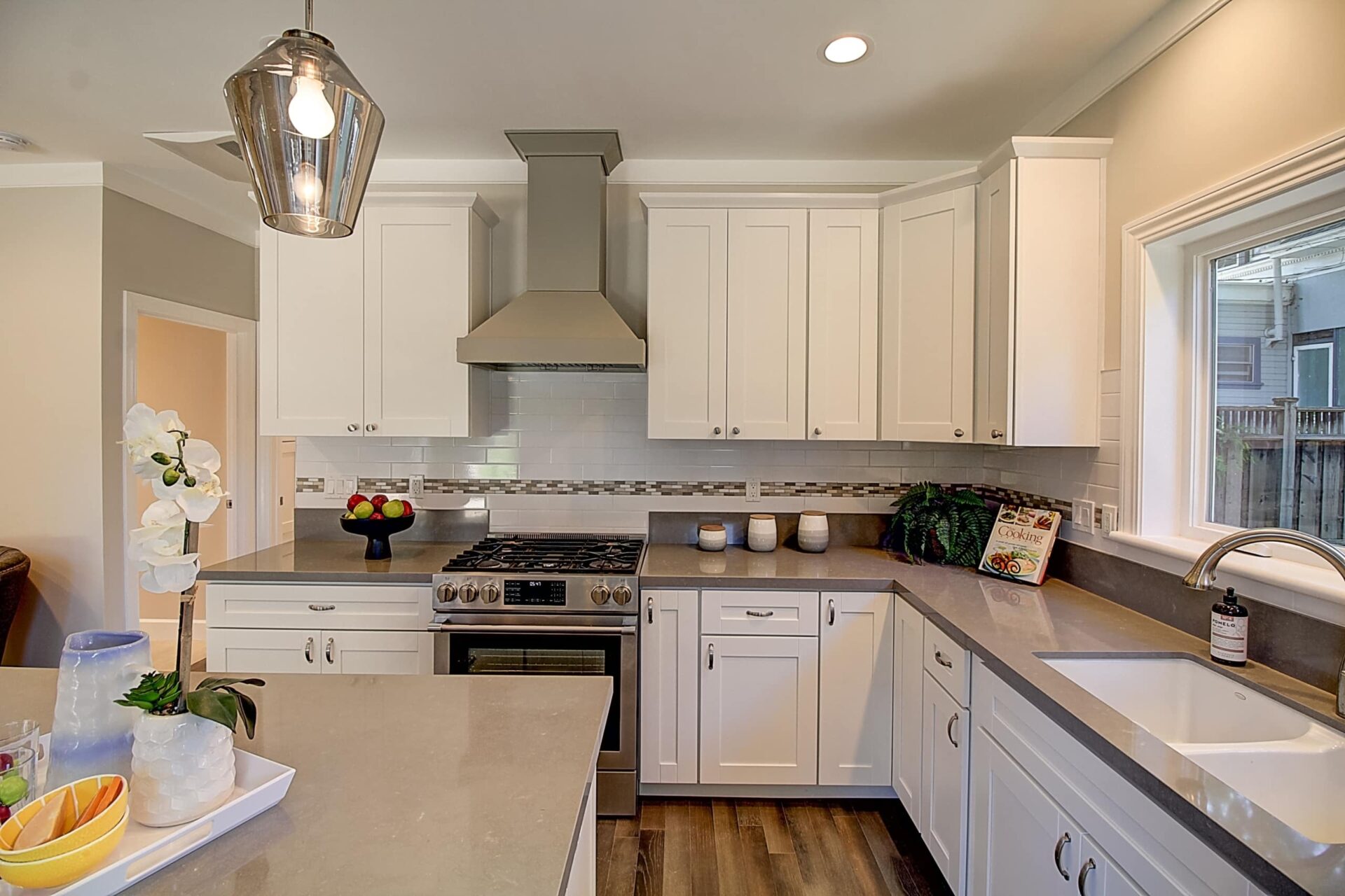 There were some very special features included for the Nilson-Wolf family that include: a dedicated laundry room with additional storage and counter space; a large island with hidden microwave; customized wood range hood; shingle style siding with complementary paint schemes, as well as a walk-in shower and transitionless flooring throughout to make all areas accessible for future aging-in-place.